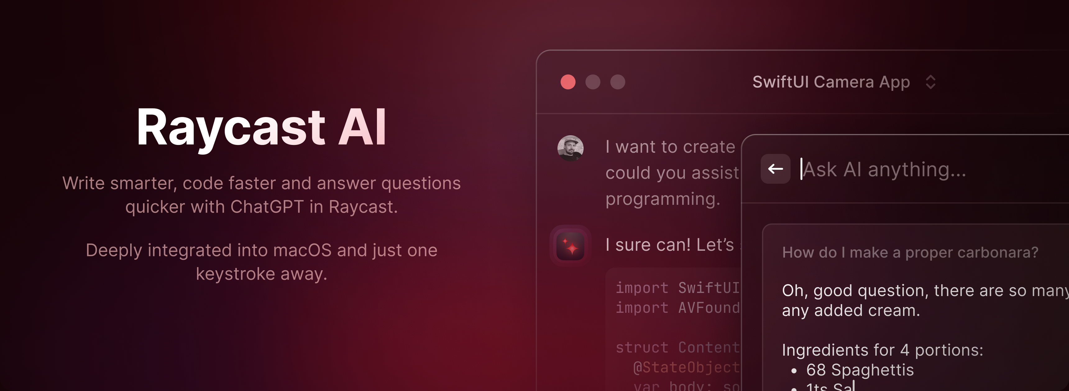 Need a quick answer? Quick AI is here to help! Summon Raycast, type your question and press Tab to get an immediate response.